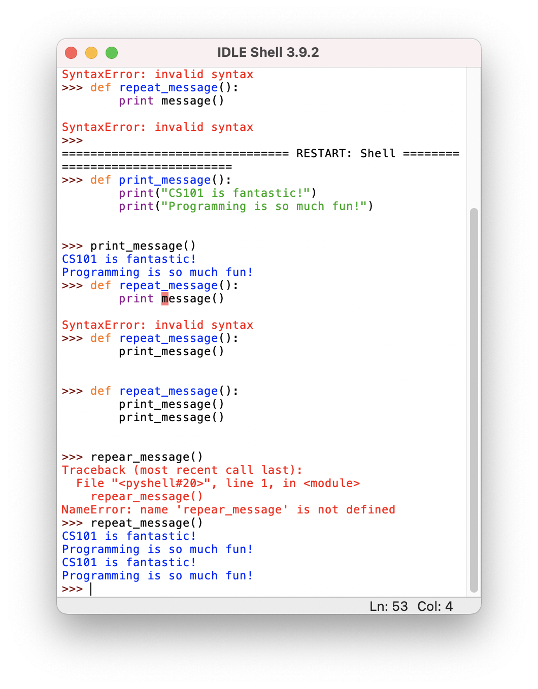 >>> def repeat_message():